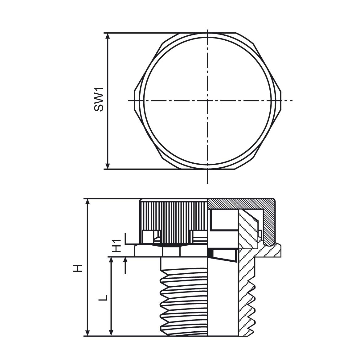 Tryckutjämningsventil Polyamid RAL 9005 Metrisk
